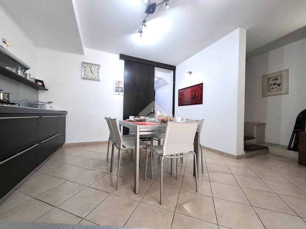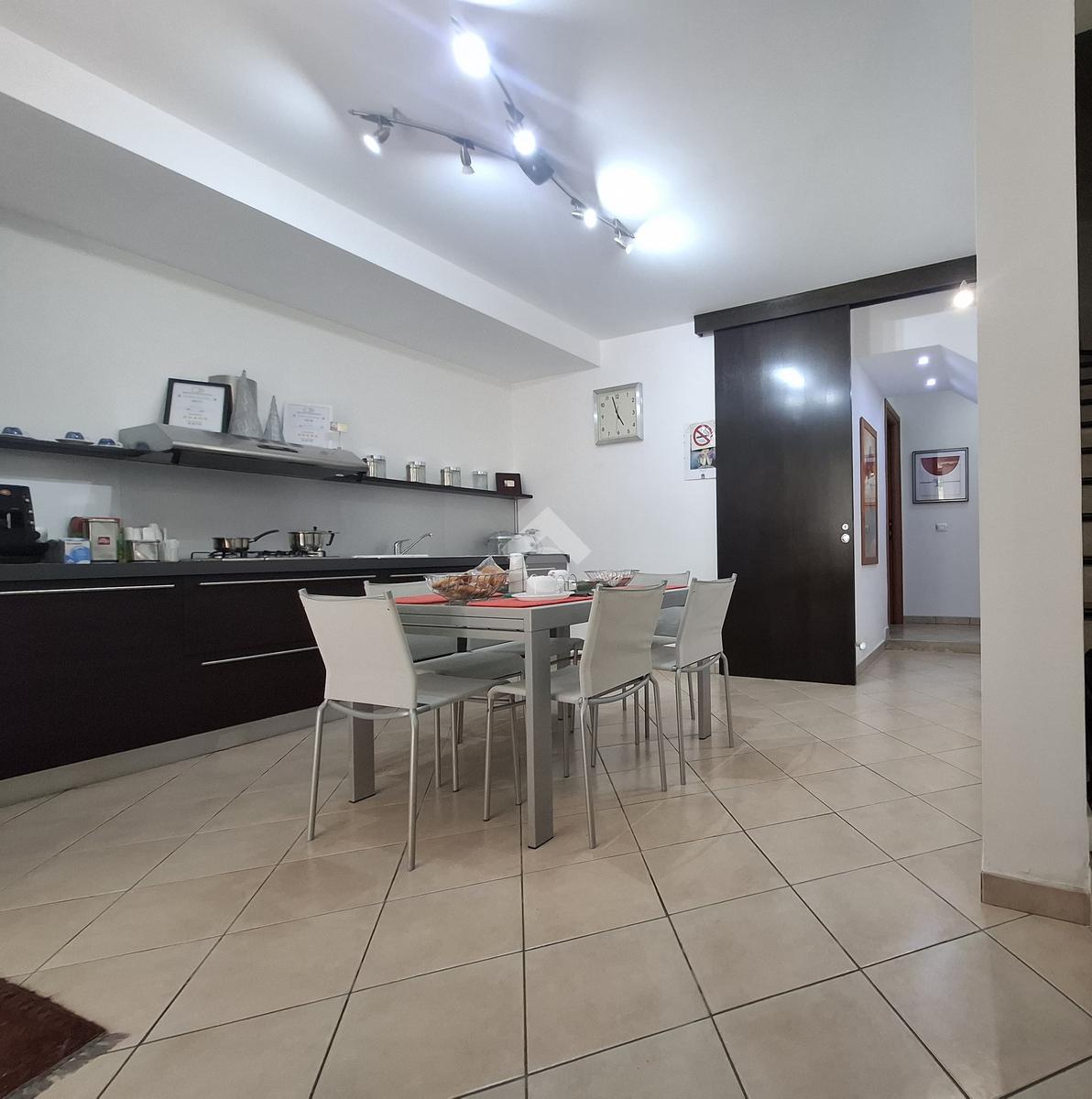 La proprietà si sviluppa su due livelli e offre una superficie ben distribuita con ingresso nell'ampia cucina al piano terra, quattro camere da letto, tutte con bagno privato in camera (due per piano), due piccoli terrazzini e angolo lavanderia.
